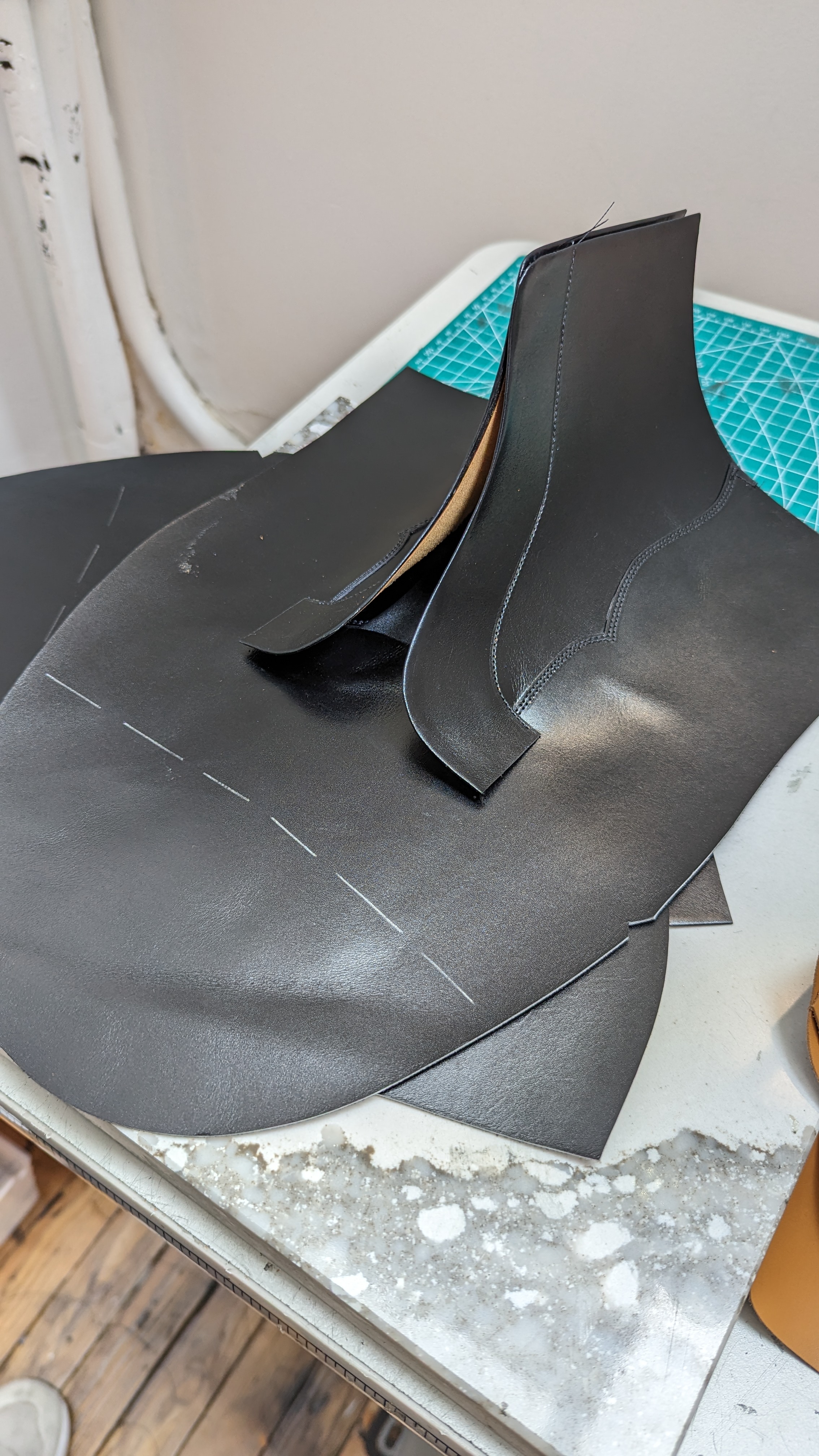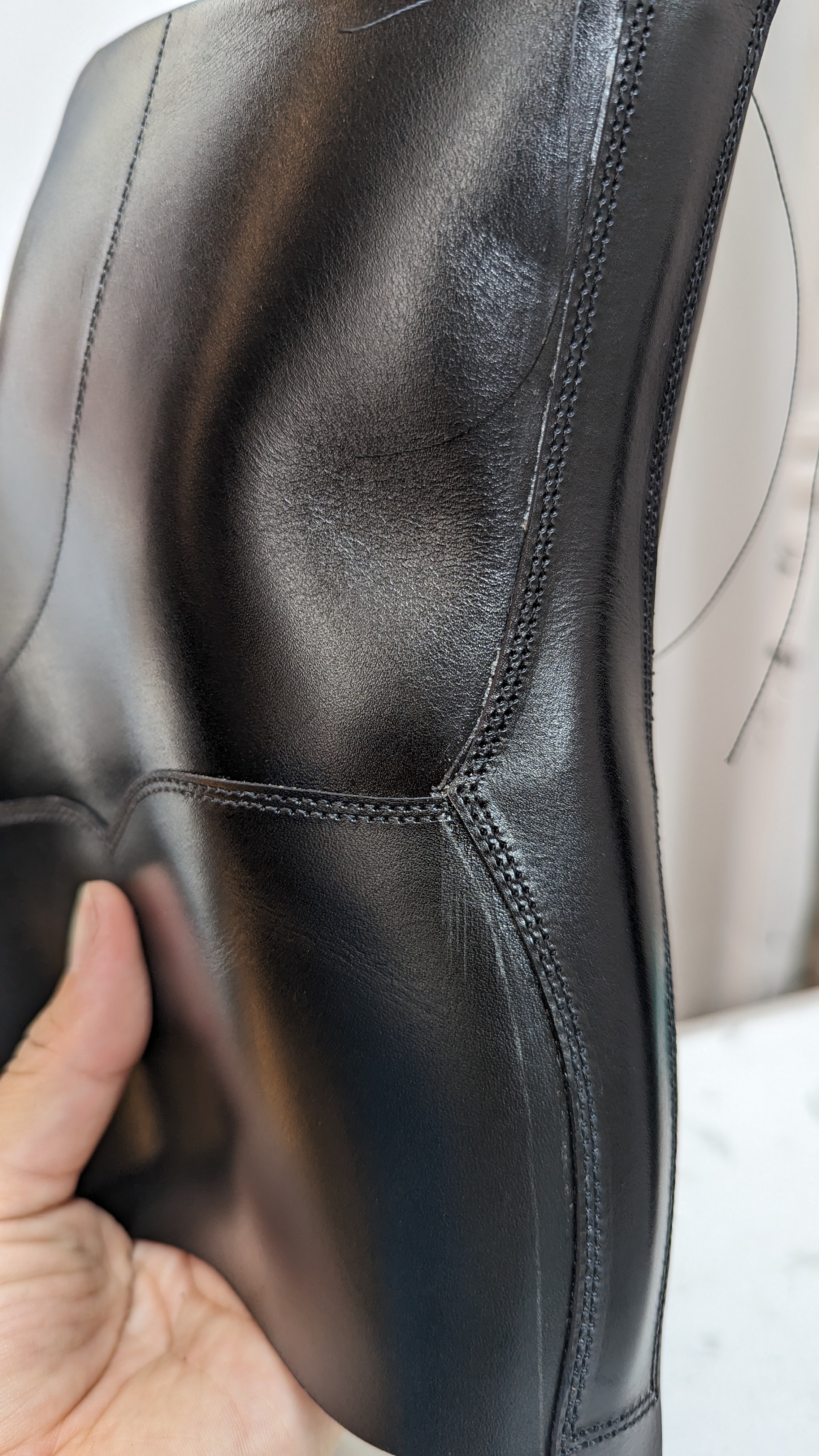 From 2022-2024 I worked for Vogel NYC training to make bespoke traditional men’s dress shoes and equestrian riding boots as an Uppermaker. The techniques for sewing leather require careful selection of the leather, informed selection of the pattern placement on the leather, clean cutting, thinning the leather sewn and folded and precise sewing. If there is a mistake in any of these crucial steps, the shoe may make it to the final assembly but still be rejected by the final review process.