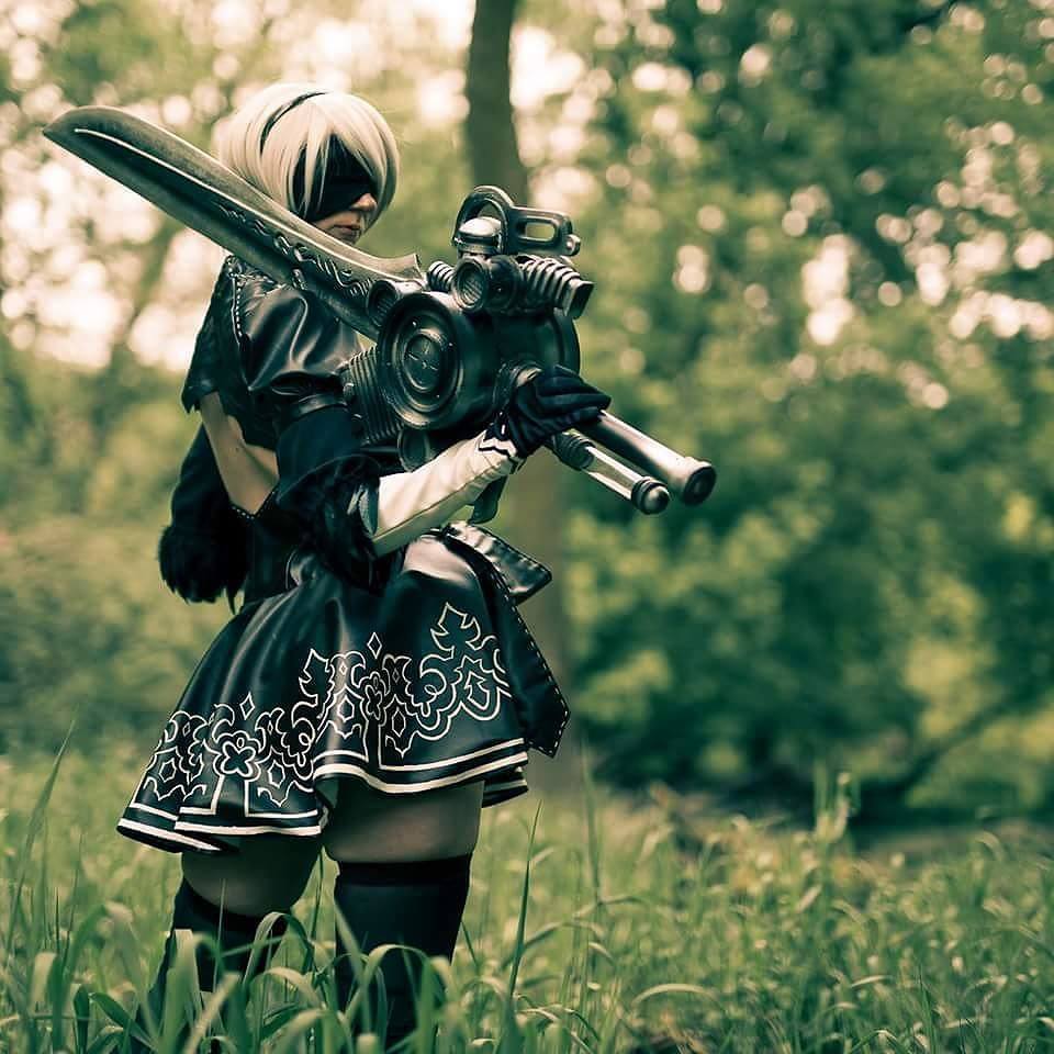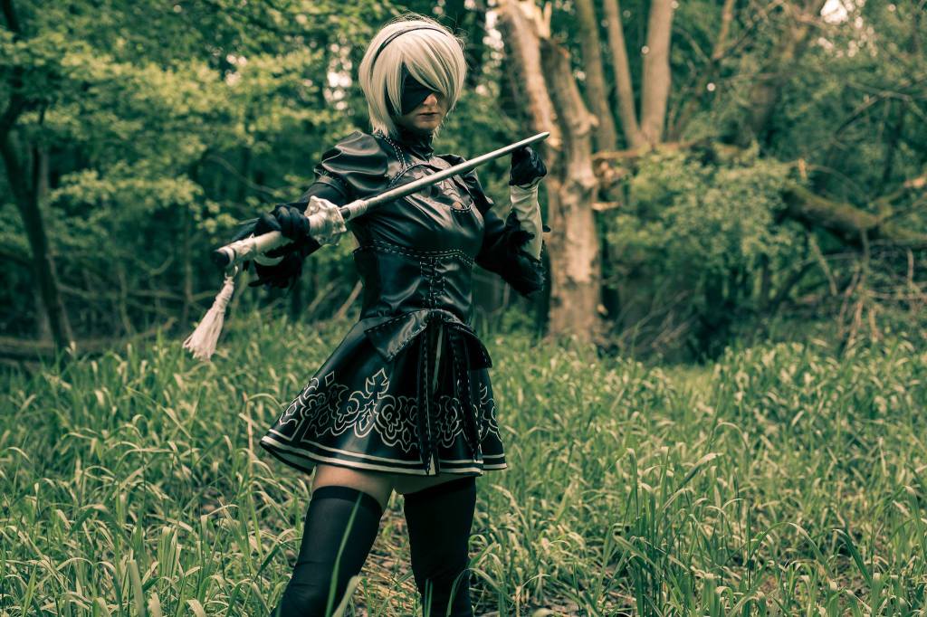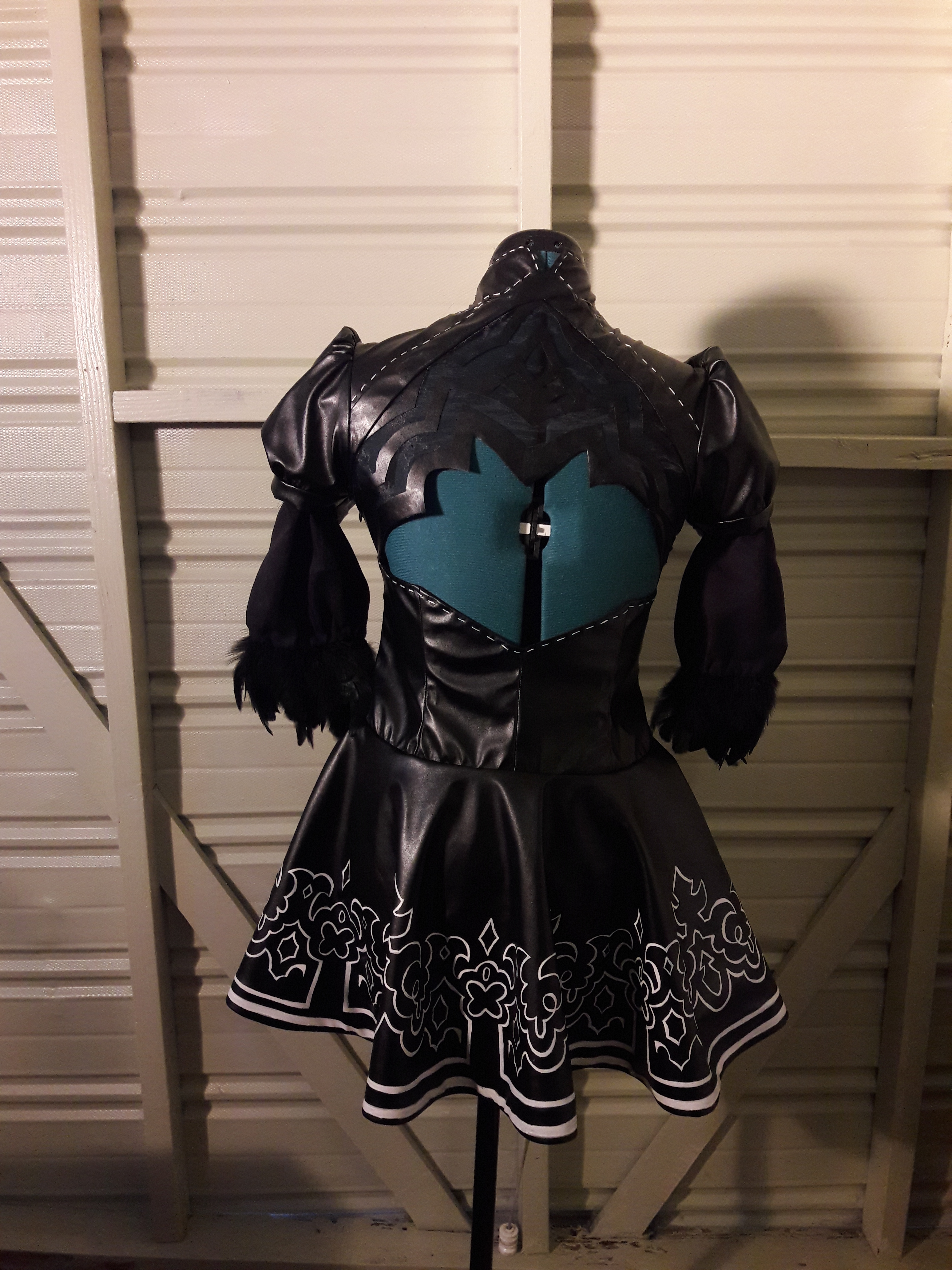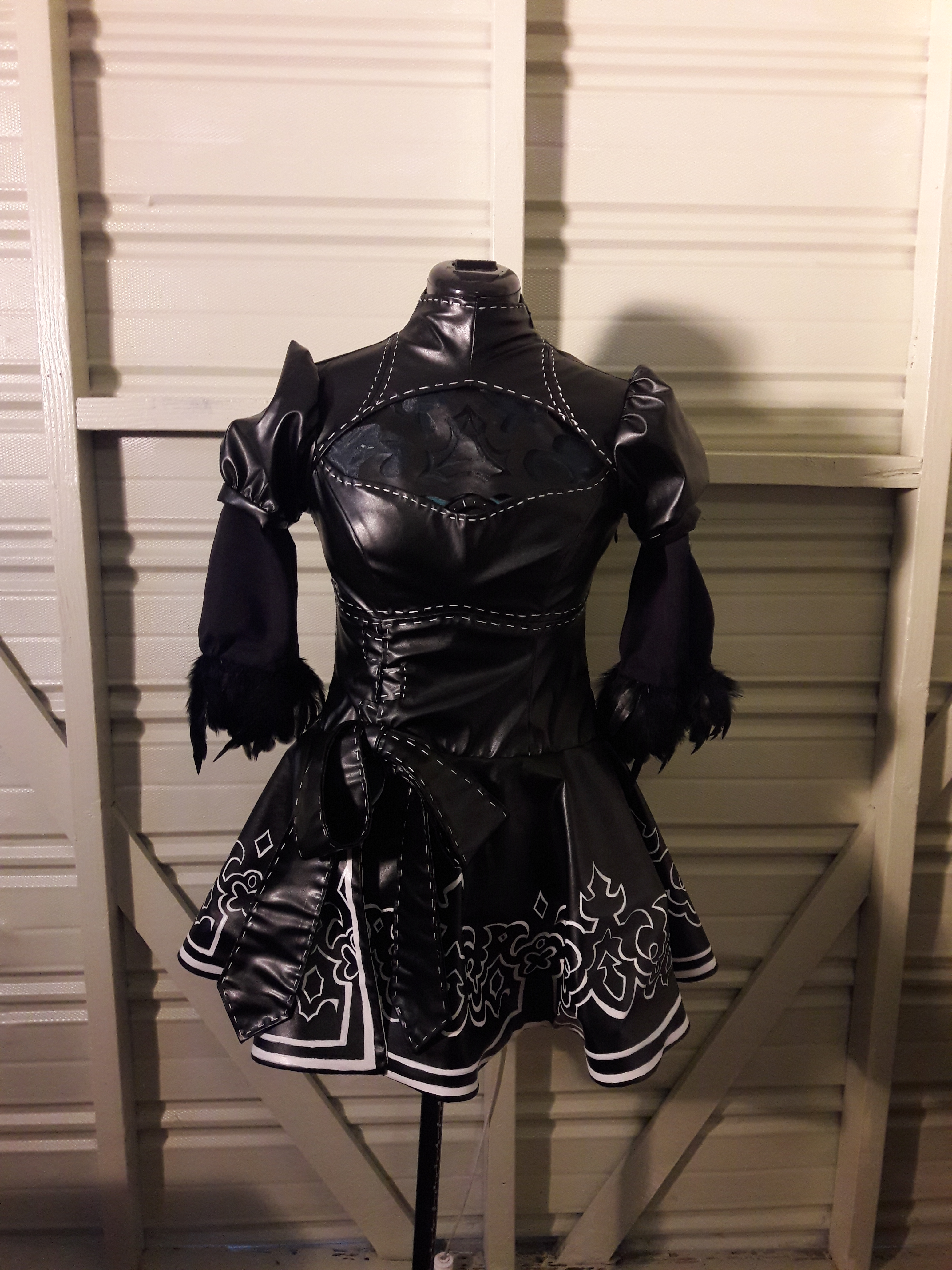 Nier Automata is an action role-playing game from 2017. The story revolves around human created androids that are battling against alien made machines. One of the characters that you can play as is a character named 2B. I was commissioned to make the costume dress, gloves, and thigh high socks.